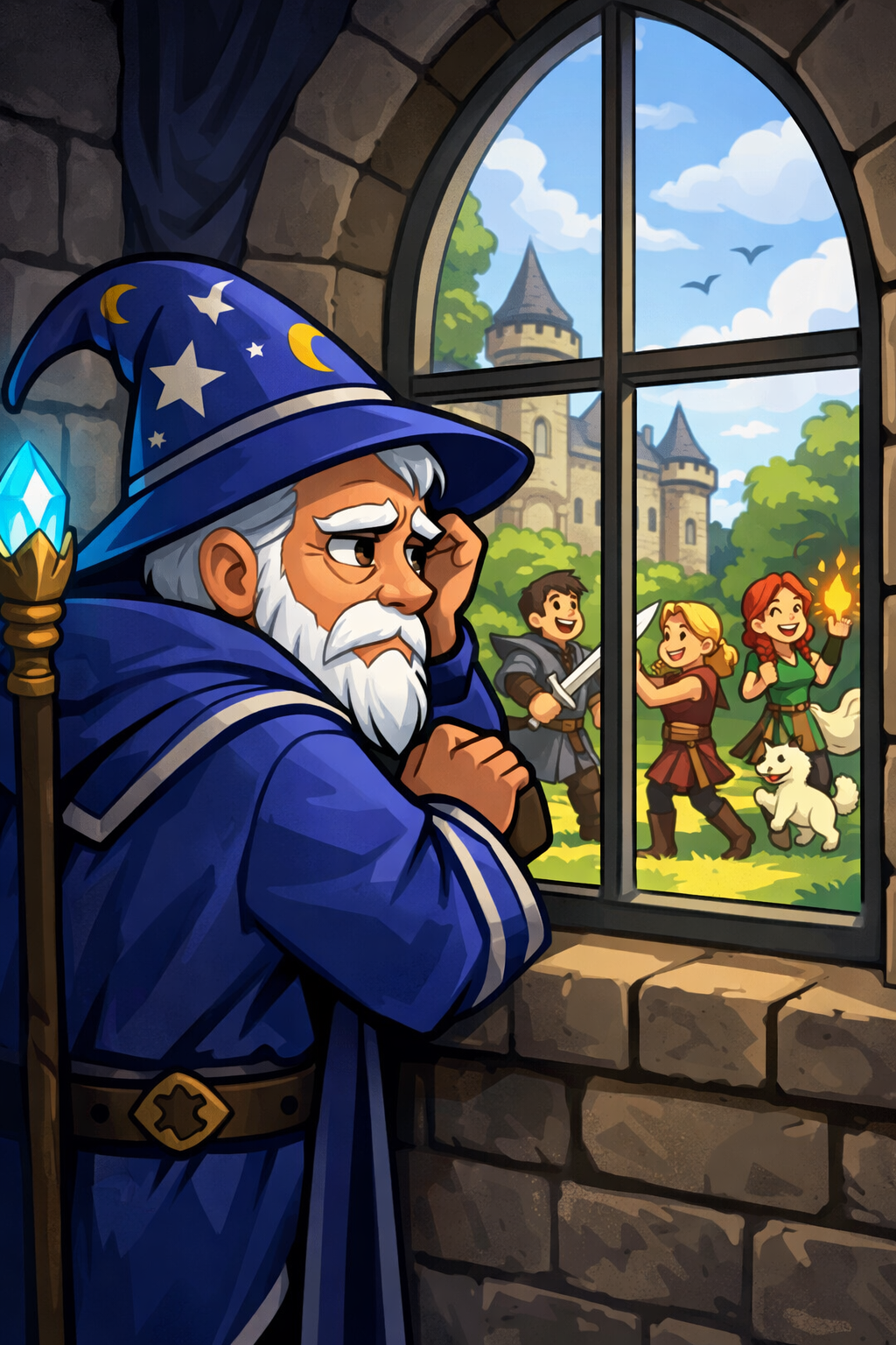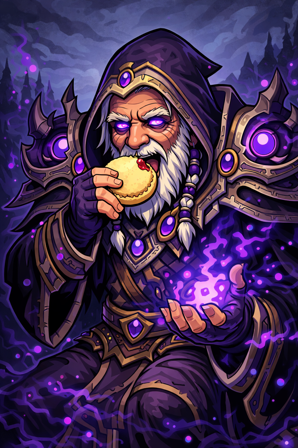 Part advisor, part mythic dad energy. Dispenses wisdom, snacks, and occasional truths that hit harder than raid-wide damage.